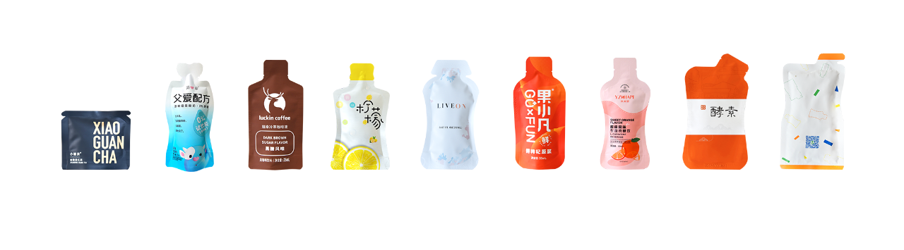 Functional Beverages: (cold brew coffee, puree, enzymes, compound juices, beverages, etc.) Custom-Shaped Bag Packaging;