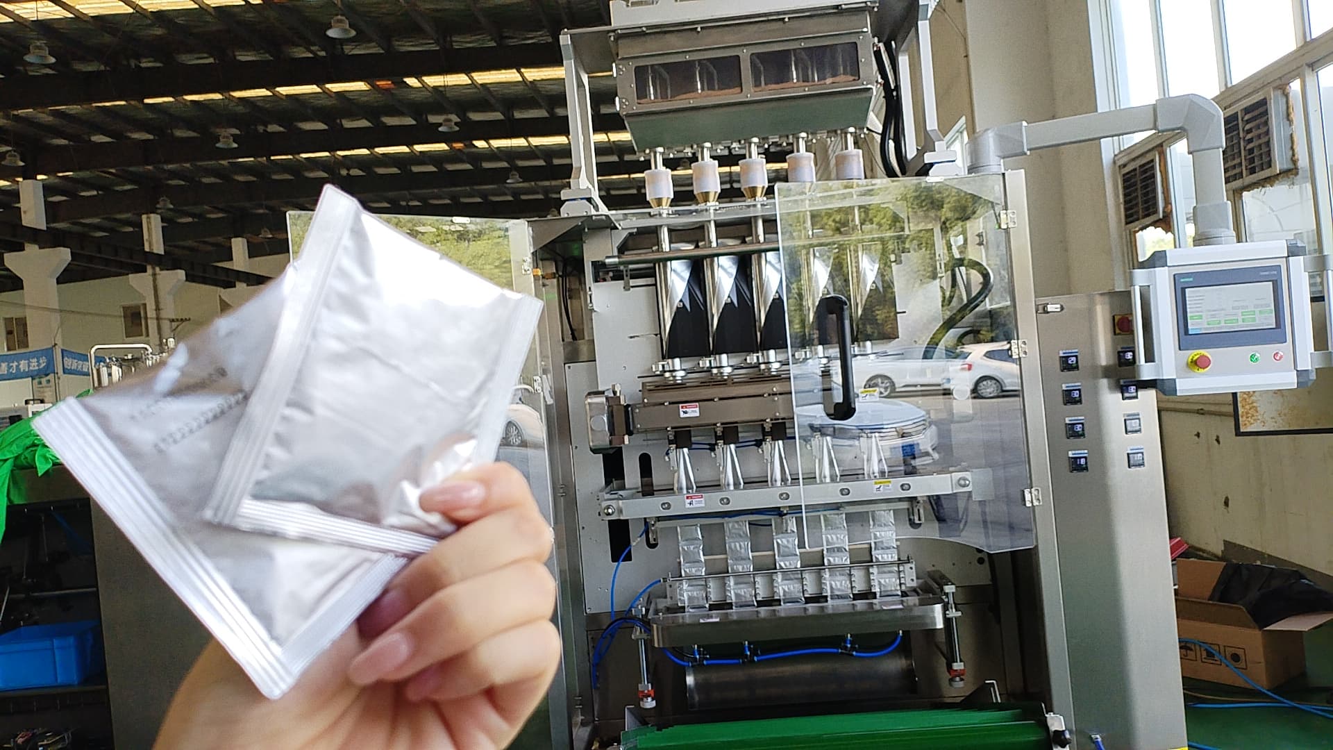 Efficiency is paramount in pharmaceutical production, where delays can impact patient access to essential medications. The vertical 3-side-seal multi-lane bag packaging machine enhances efficiency through its multi-lane design, which allows parallel processing of bags. Unlike single-lane machines, this system can handle 2 to 8 lanes simultaneously, reducing cycle times and increasing throughput by 30-50%. For example, in a facility packaging vitamin supplements, this machine can produce over 1,000 bags per minute across multiple lanes, minimizing bottlenecks. Additionally, its vertical orientation saves floor space, a valuable asset in crowded production environments. The automation features, such as automatic film feeding and fault detection, reduce manual intervention, lowering labor costs and human error. In terms of material usage, the machine optimizes film consumption through precise cutting and sealing, leading to less waste and cost savings. Case studies from pharmaceutical companies show that adopting this technology can cut packaging time by up to 40%, allowing faster market entry for new drugs and better responsiveness to demand surges, such as during pandemics.